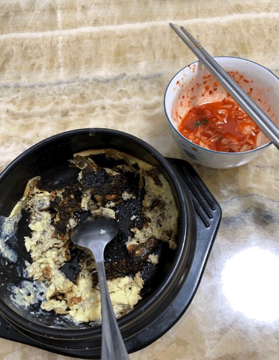 冰箱里还有一大罐泡菜,空气炸锅还有一点烤鱿鱼