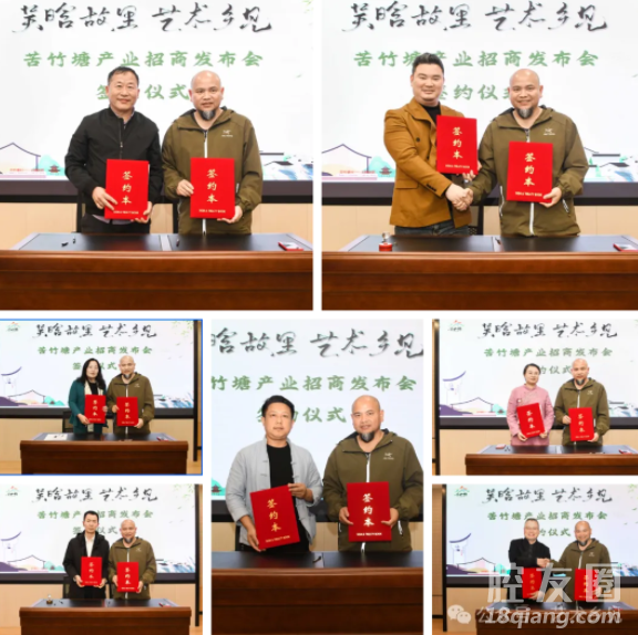 在签约仪式环节,义乌市创意产业协会、义乌市工业设计协会、1488艺术露营基地、国际人才训练中心、美食小吃街、巧克力艺术体验中心、7喜工坊等单位代表上台签约,共同见证了苦竹塘村产业招商的丰硕成果。
