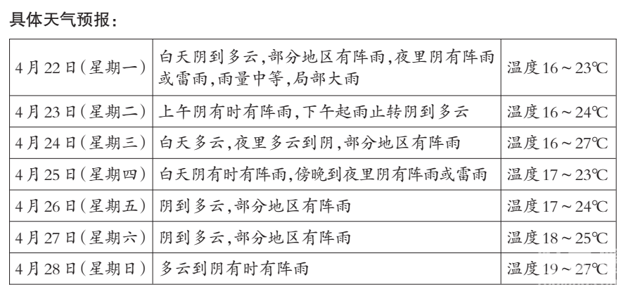 眼看着4月接近尾声,雨水还没下够,气温也迟迟爬不上去。我们什么时候才能迎来连晴的好天气?从最新天气预报来看,4月下旬将继续被雨水“控场”,最高气温短时间内也上不了“3”字头。雨水多是谷雨节气的特点之一。中国天气网盘点1991年至2020年的气象大数据发现,相较于春季的其他几个节气,谷雨时节,降水量是最多的,增幅也是最明显的。从立春节气开始,我国各地的降水量逐步增多,到谷雨节气平均降水量达到春季最大,而且谷雨节气平均降水量增幅也远超其他节气。而导致这一现象的原因是暖湿气流和冷空气“打架”,两者交汇容易形成较长时间的降雨天气。此外,常年谷雨节气期间,低气压和江淮气旋活动逐渐增多,是一年当中强对流天气的高峰期,雨水开始变得任性,基本上以阵雨或雷雨形式为主。今年谷雨也不例外。省气象台预计,未来一段时间我省将持续被雨水“控场”,且最令人糟心的连阴雨要来了。从天气形势上看,这一次水汽过程和能量条件都不错,未来几天都易出现午后强对流天气。公众出行需注意交通安全,及时关注当地气象部门最新的预报、预警信息。市气象台预计,本周我市暖湿气流都较活跃,多阴雨天气,气温总体平稳。其中,今天夜里以及4月25日夜里,受高空槽和低层低涡切变线影响,各有一次较明显的降水过程。除了这两次较明显的降水过程,本周剩下几天也会出现雨水的身影。即使白天出门时没有下雨,大家也最好带上雨具,因为近期“雨水可能会迟到,但绝不缺席”,多以阵雨或雷雨的形式出现,要随时注意天气变化,加强防范强雷电、雷雨大风可能造成的影响,注意安全。从气温来看,在雨水的压制下,气温还是爬不上去,最高气温在23~27℃。也因为雨水,昼夜温差较小,最低气温不算低,在16~19℃。别看近期总是“雨雨雨”,但按照往年情况看,春天的“余额”已越来越少。到了5月,夏天随时可能上线,即使是下雨的春天也别有一番韵味,大家且过且珍惜。 请输入描述