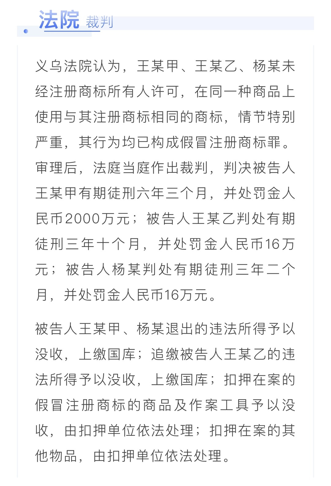 知产周  假冒零容忍!义乌法院开出2000万元“罚单”,依法惩处一起假冒注册商标罪案件
