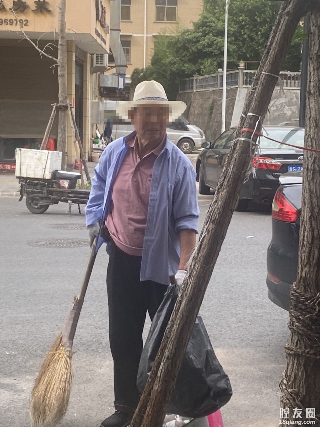 稠江杨村社区 图上这位大叔好威风啊 人行道上的几张纸吹到马路上很凶的骂我们 说我们是吃屎还是吃饭的
