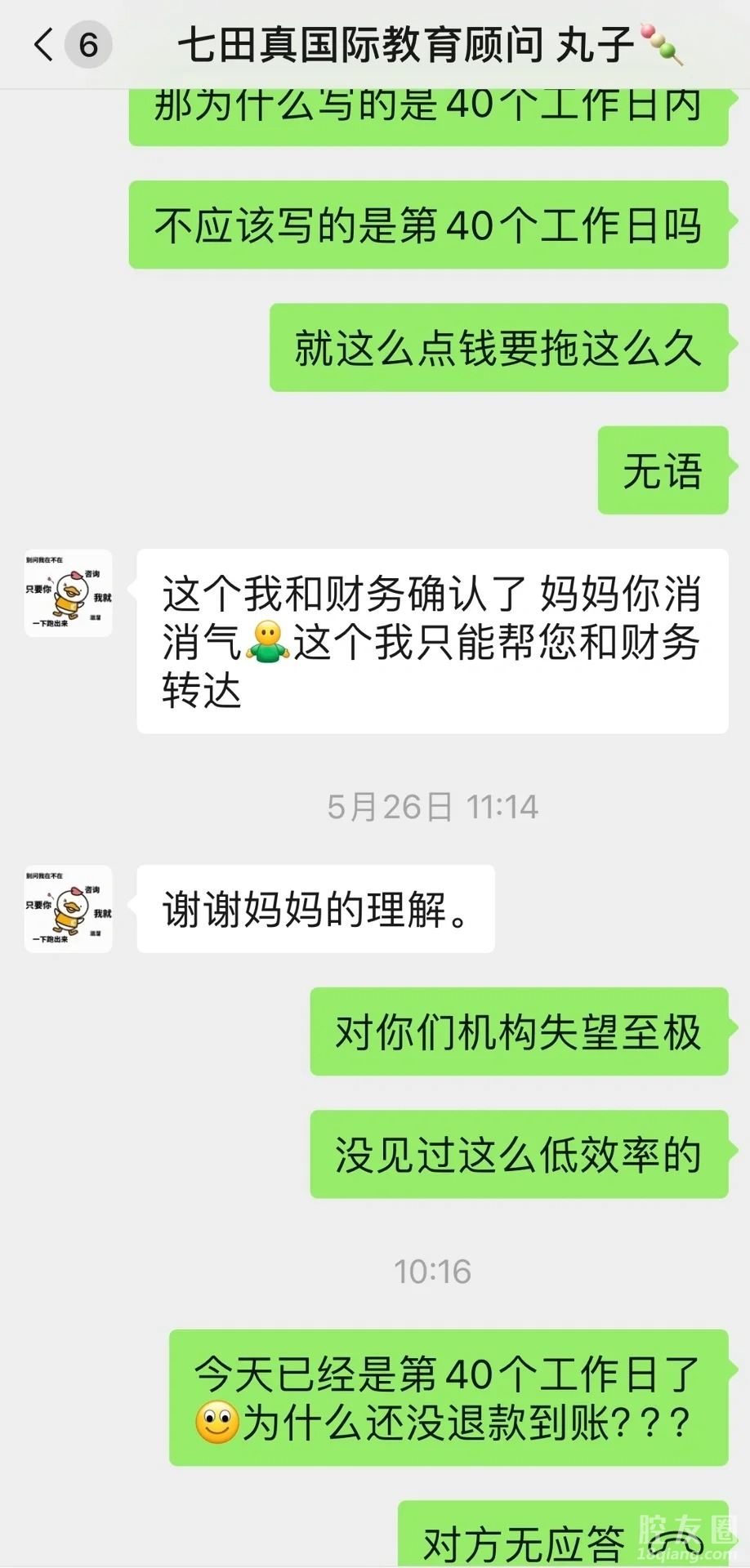 九千来块退了两个多月!合同上写着40个工作日内退,结果第40个工作日了也没到账,顾问说争取过两天退好,瞬间火大,你们怎么不写400个工作日呢??!从报完班以后体验就非常差!就连退费也要恶心人!(最新动态:在施压以后退费已到账!过程太心累!)