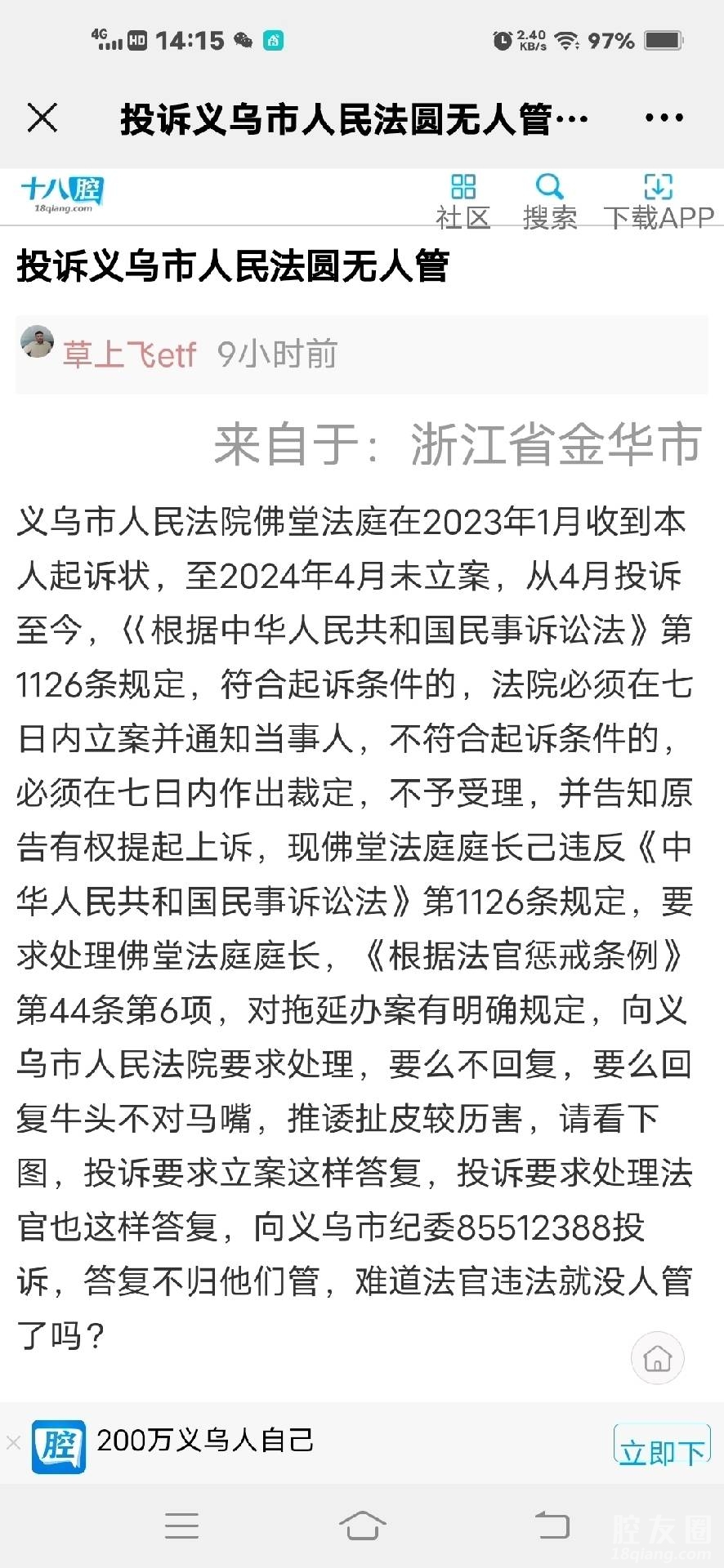 [义乌故事]投诉义乌市人民法圆法官违法推诿扯皮 [复制链接]
