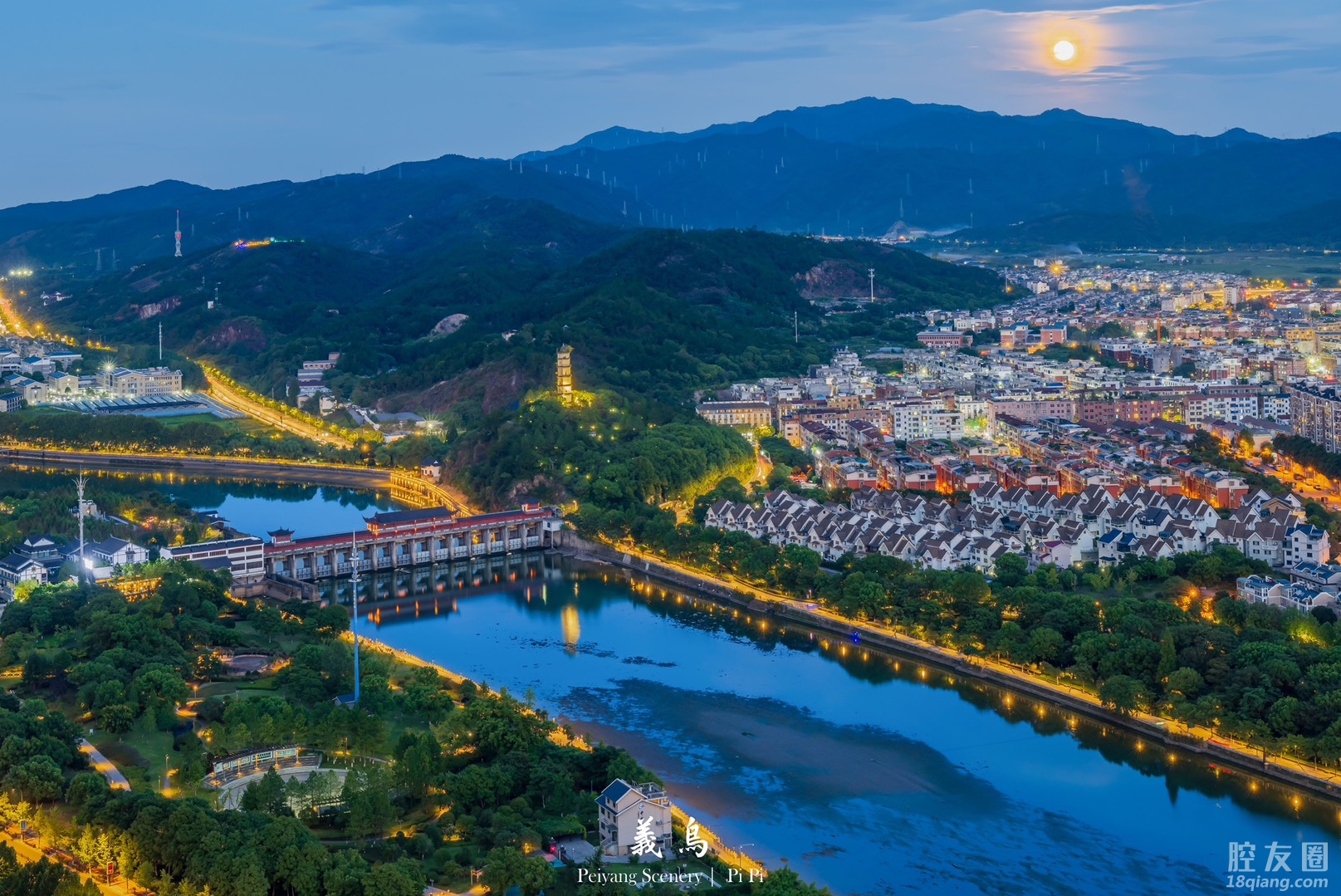 义乌江在夜色中波光粼粼,江边的景观灯勾勒出优美的轮廓,为城市增添了一份灵动之美。