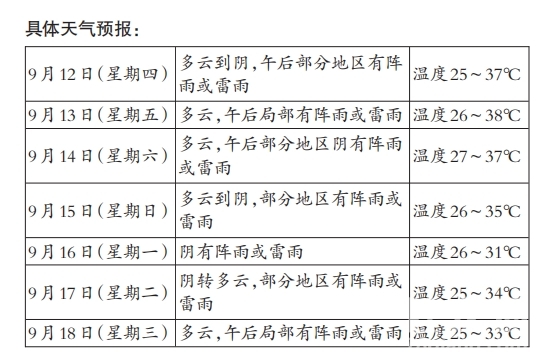 所以,本周后期的重点仍是防暑防晒,下周前期的重点就要变成防台了。中秋假期有外出计划的小伙伴一定记得先看天气预报,及时关注台风动态。