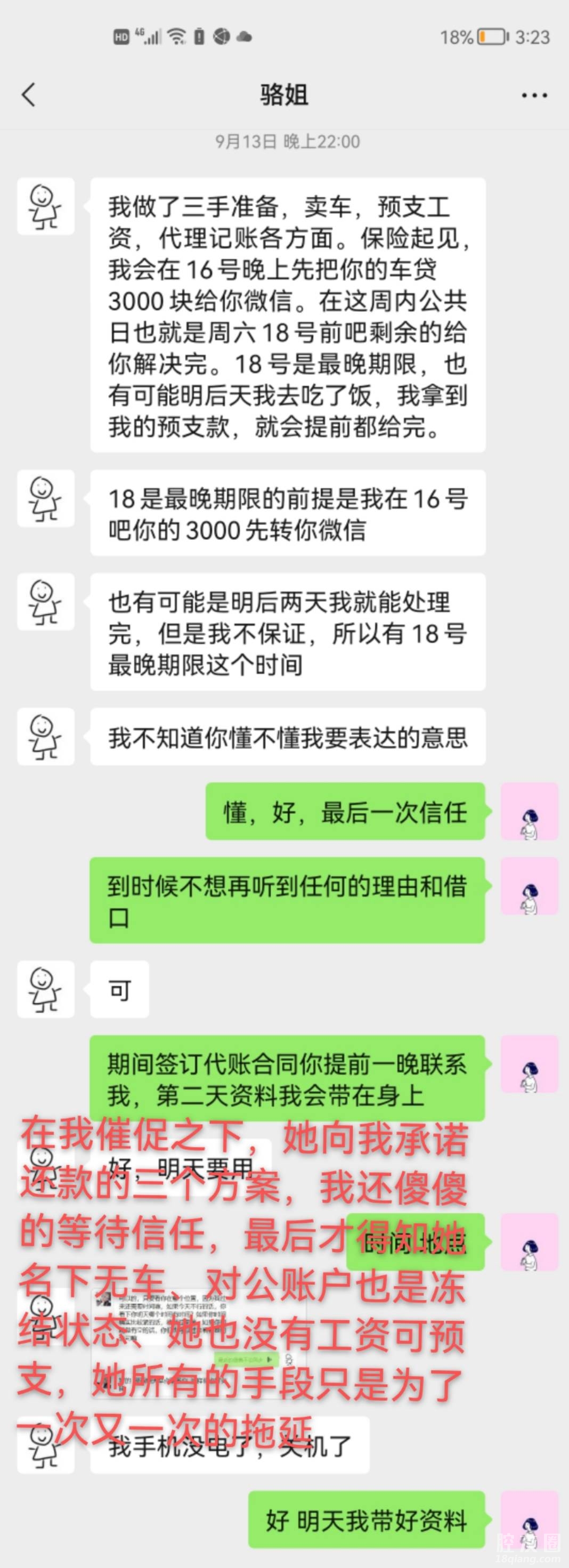 整个过程她都以各种虚假的信息骗取我的信任,捏造各种不实的缘由前来借钱,并且处心积虑营造出自己有能力偿还的假象。后面多次催促接触中才觉已掉进她的骗局!!!