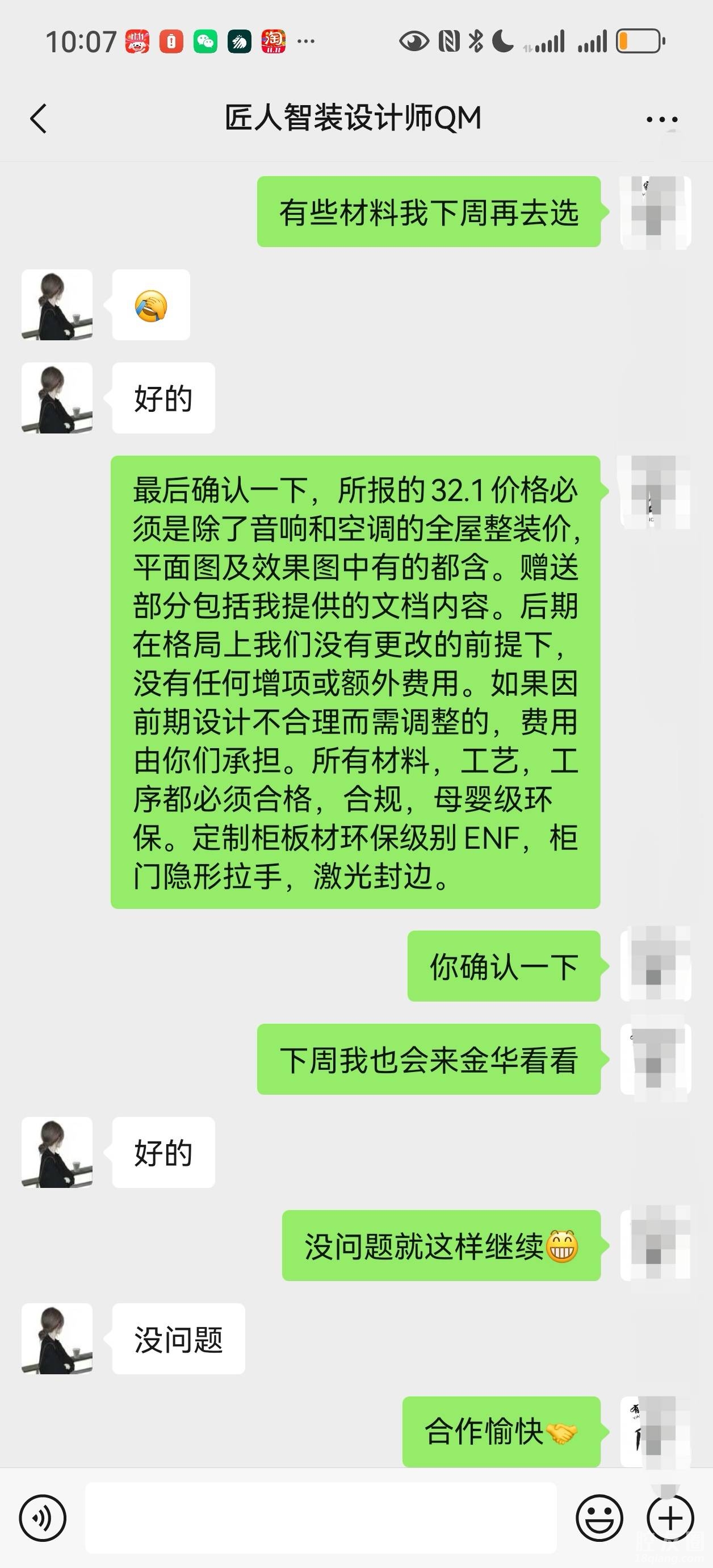 3月27日签订装修合同,双方约定定制柜61个平方,749元全包落地,后期在没有修改设计方案的前提下,保证无增项。8月21日被告知定制柜有1.2万增项,我表示“书柜和餐边柜柜门调换,闺女书桌加梳妆台功能,这部分2000左右增项认可。其余未改动过何来增项?且因设计方案不合理实际交付49个平方,少了12个平方,合计1.2万额外费用哪里来的?”见我态度强硬,23日直接单方面停工催款,并私下偷走定制柜柜门,厨房碗篮……在我更换门锁后直接升级到明抢。我报警,在警察到场之前两个人控制住我,一个人搬东西,致我受伤,并设计成我先动手打人,他们无还手行为的视频录像。面对出警民警谎称我还欠八九万工程款没付,是他们的东西。并扬言“这钱你不付,这事就没玩”。